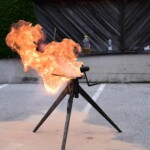 Wir demonstrierten bei einer Vorführung das richtige Verhalten bei einem Fettbrand und auch, was passiert, wenn man zum falschen Löschmittel greift.