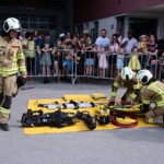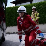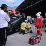 Außerdem wurde die Bergung von eingeklemmten Personen in einem umgestürzten PKW und die Versorgung der Verletzten von der FF Weerberg und dem Roten Kreuz vorgeführt.