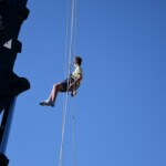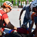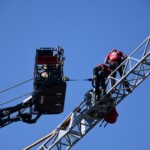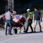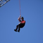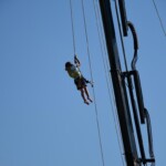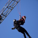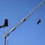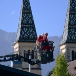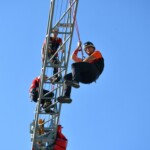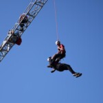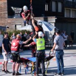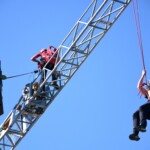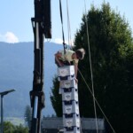 Bei der Schauübung der Bergrettung Schwaz wurde eine Personenbergung am Ausleger eines Baukrans demonstriert. Die Bergretter wurden mit der Drehleiter Schwaz zum Aufleger des Krans gehoben und dann konnten die Rettungskräfte den Verunfallten bergen.