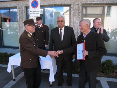 Abschnittskommandant Karl Rinnergschwentner und BM Ferdinand Angerer übergaben die Medaillen, Urkunden und Aufschläge.