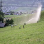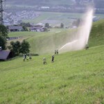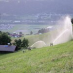 Die Wasserversorgung wurde daher vom „Schaller“ und vom „Innermoos“ aus Hydranten mittels Schlauchleitungen hergestellt. Von der Alarmierung bis zum Beginn der Löscharbeiten dauerte es nur 16 min.