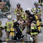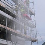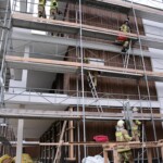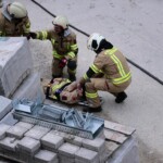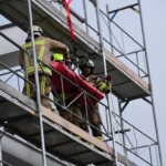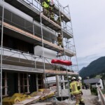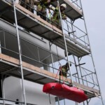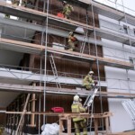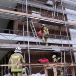 Übungsannahme 2: Seilbergung mehrerer Verletzter über das Außengerüst der Wohnanlage.