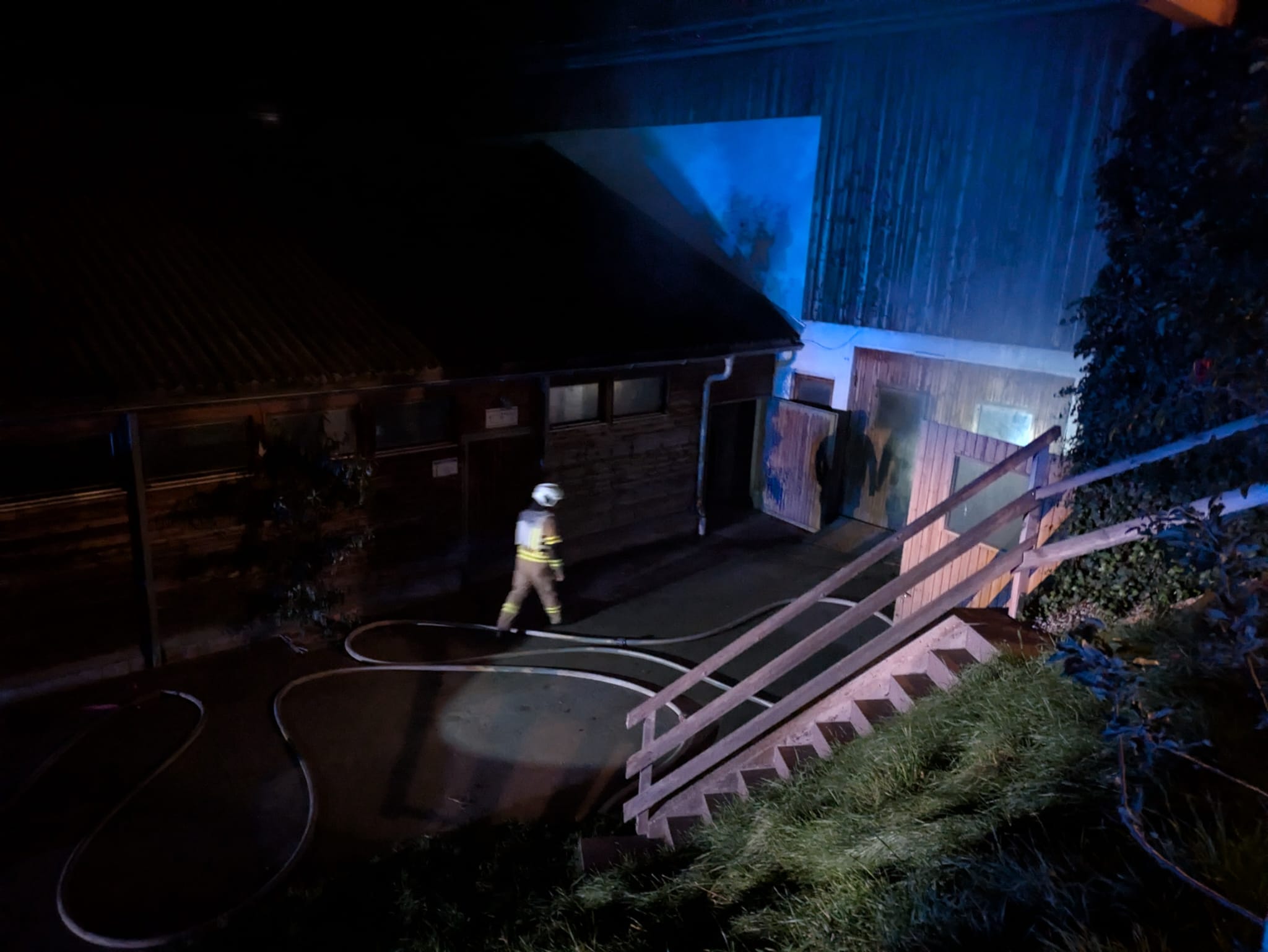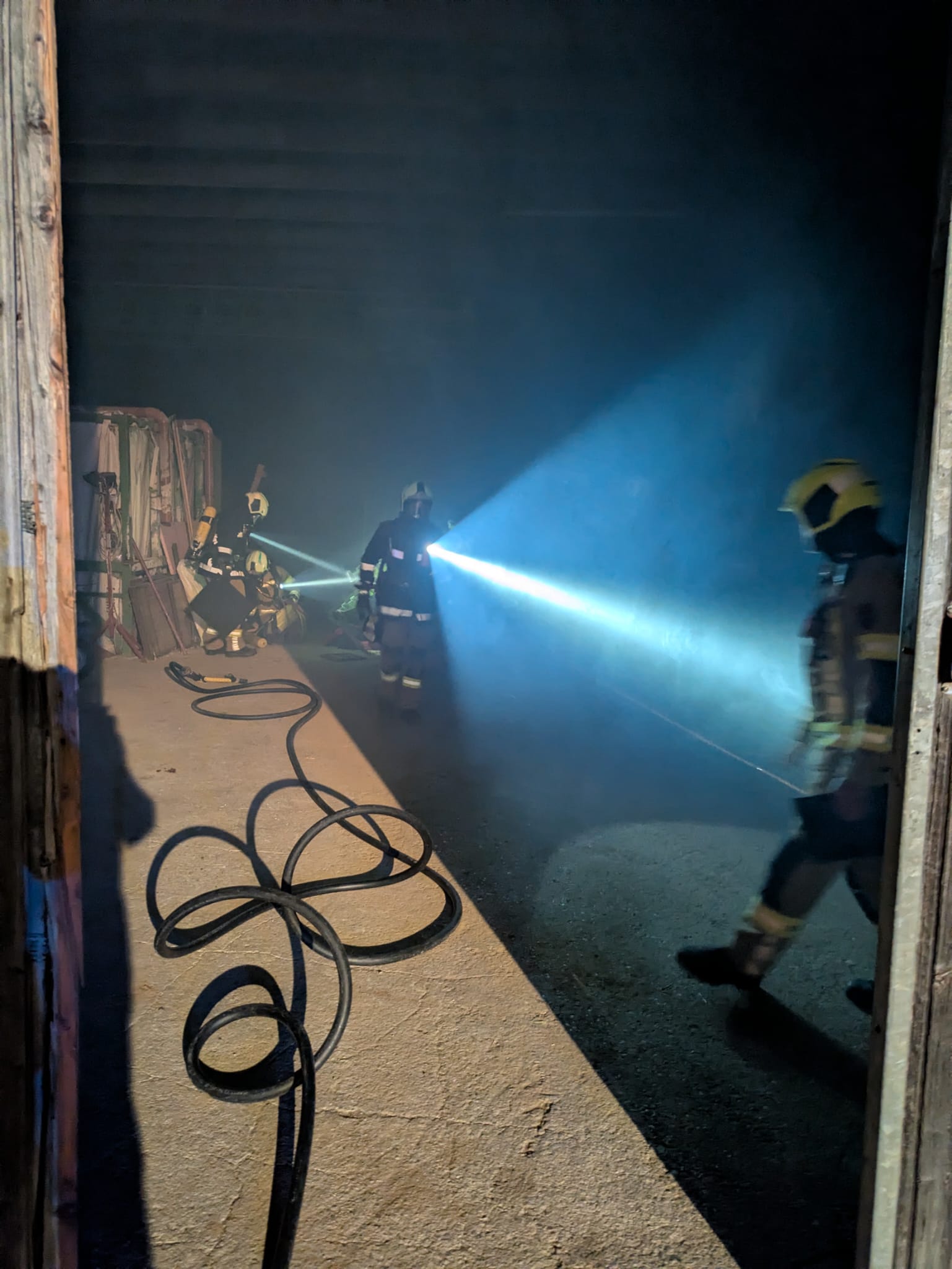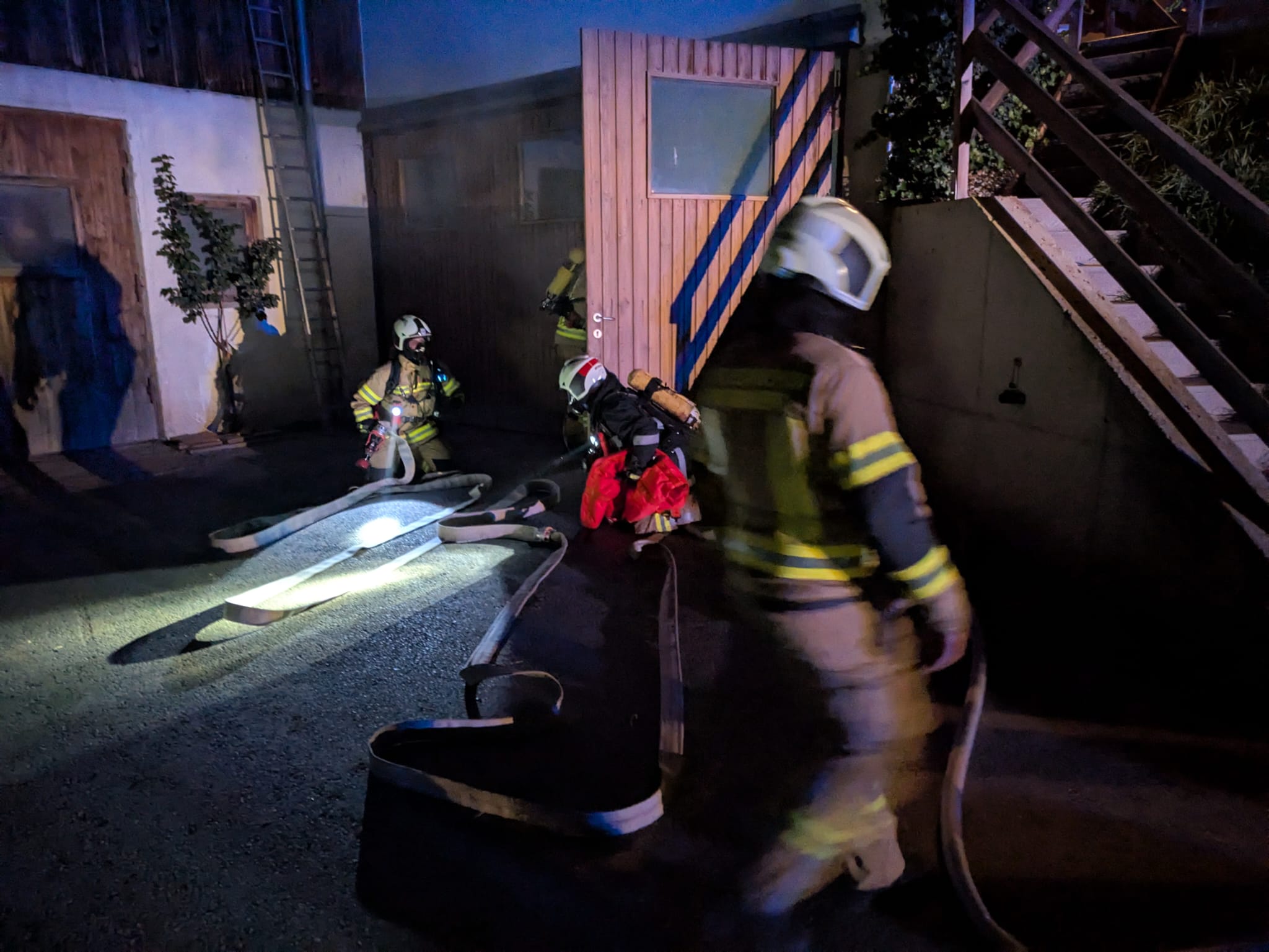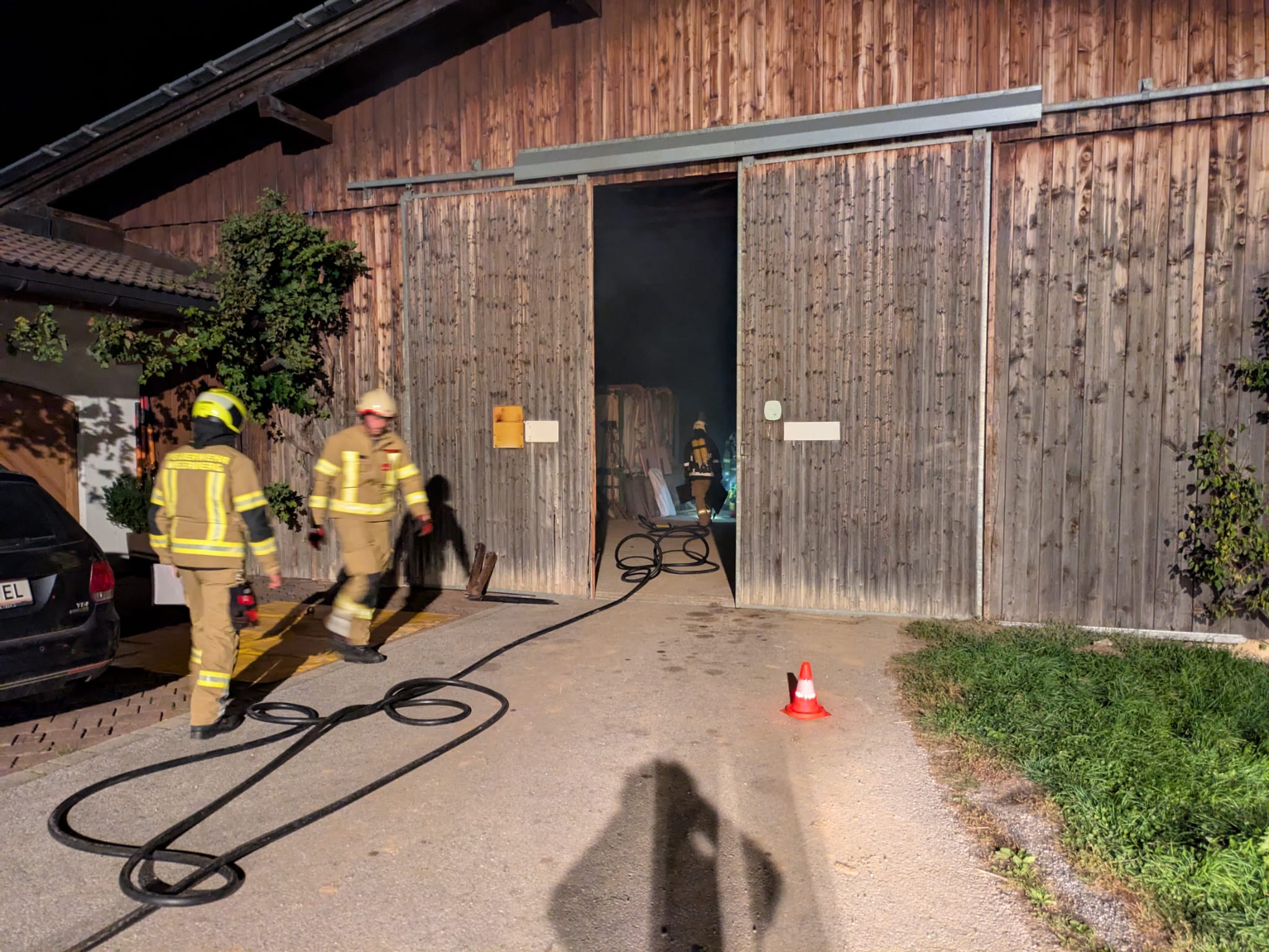 Bei unserem Eintreffen stellten wir neben einem Schwelbrand im Tennengebäude fest, dass eine Person durch den Heukran gepfählt und eingeklemmt wurde.