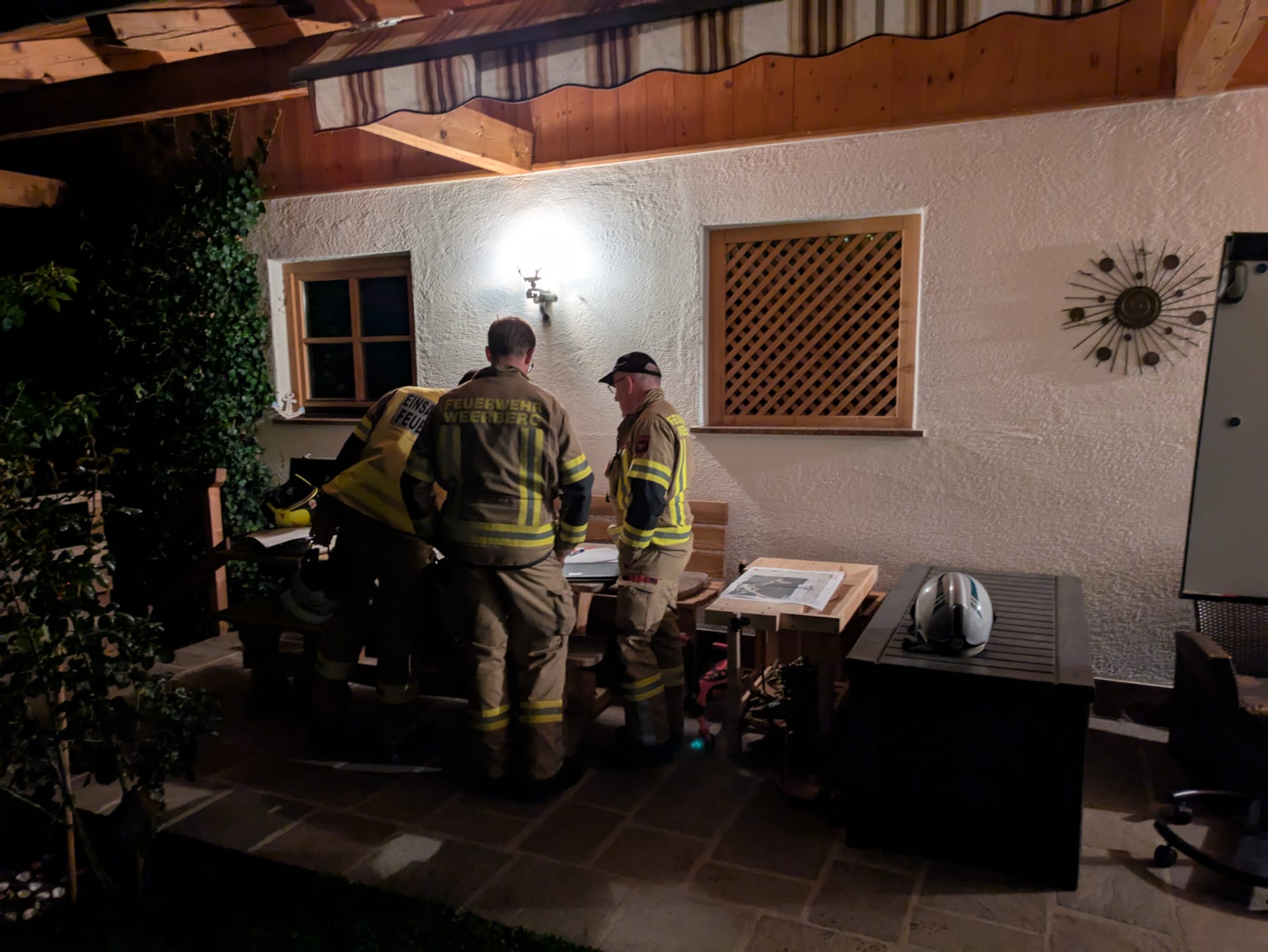Weiters war in der Garage durch einen defekten Wechselrichter ein Brand ausgebrochen. Hier waren 2 Personen mittels ATS-Träger zu bergen.