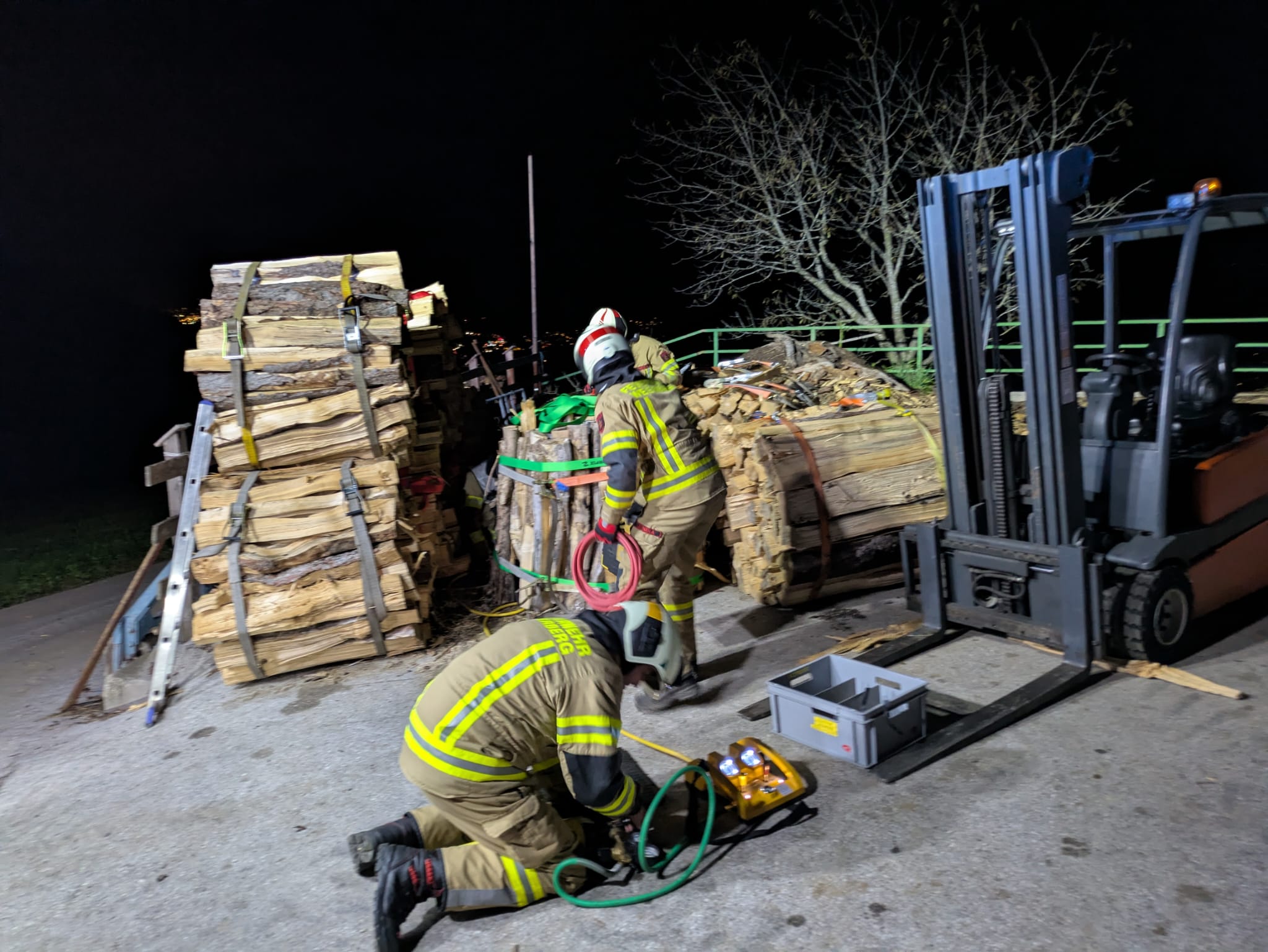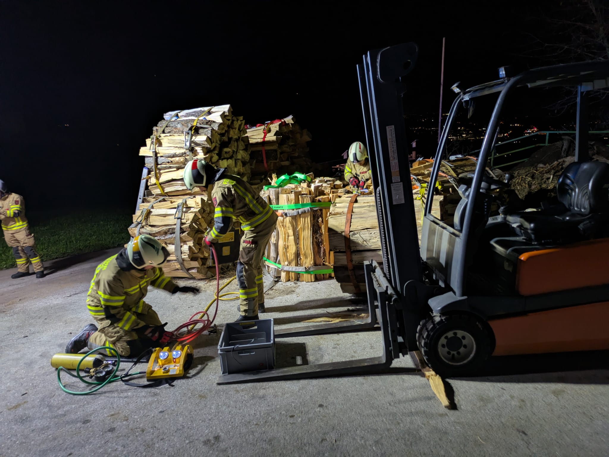 Außerdem war eine Person unter einem Bündel Holzscheiter eingeklemmt.