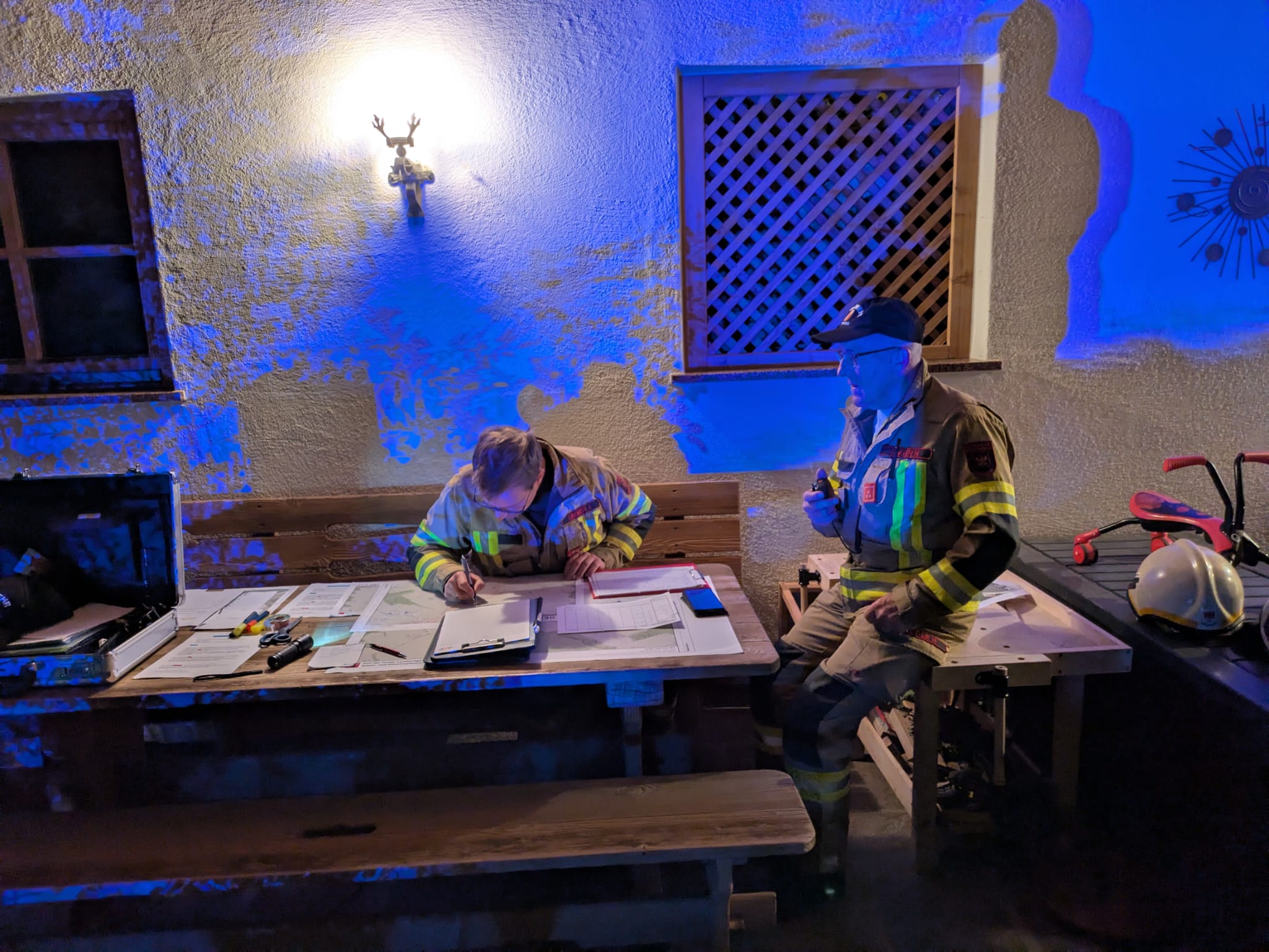 Die Gliederung und Aufteilung der Übung in Einsatzabschnitte unter einem Einsatzleiter und das Errichten einer Lageführung konnte bei dieser Gemeinschaftsübung ebenso geprobt werden.