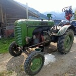 Ein Traktor verlor durch einen geplatzten Schlauch Diesel.