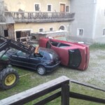 Ein angenommener Verkehrsunfall vor dem Einsatzort zwischen 2 Pkws und einem Traktor. Die Fahrzeuge wurden mittels hydraulischem Rettungsgerät geöffnet.
