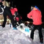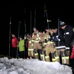 Neben dem Ausleuchten des Lawinenkegels und des Hubschrauberlandeplatzes unterstützten wir die Bergrettung bei der Sondierung sowie bei der Bergung und beim Abtransport der Verunglückten. Außerdem wurde der Kontrollposten am Lawinenkegel von uns besetzt.
