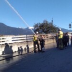 Im Anschluss an die Übung durften sich die Kinder noch als Feuerwehrfrauen und -männer versuchen. Mit dem HD-Strahlrohr wurde das Löschen geübt.