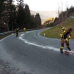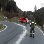 Auf der Heimfahrt sahen die Kameraden auf der L301 Pillerstraße eine Dieselspur im Bereich Gangl Kurve. Die Dieselspur wurde gleich gebunden und danach die Straße gesäubert.
