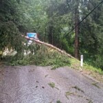 Am Hochhäuserweg lag ein entwurzelter Baum quer über die Straße und auf der Telefonleitung. Wir befreiten die Fahrbahn vom Baum, säuberten die Straße und sicherten die Telefonleitung.