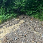 Noch während der Arbeiten am Hochhäuserweg erreichte uns eine weitere Alarmierung. Das „Floachbachl“ ist wegen Verklausungen über die Ufer getreten und hat die Innberbergstraße in diesem Bereich unpassierbar gemacht. Gemeinsam mit den Gemeindearbeitern und einem Transportunternehmen befreiten wir die Straße von Geröll und Schlamm.