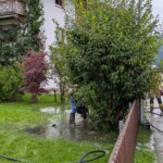 Wir pumpten bei den beschädigten Räumlichkeiten bzw. Flächen das Wasser und den Schlamm ab.