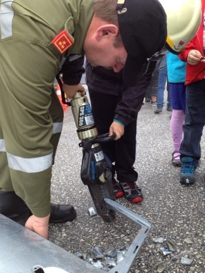 Danach wurde eine praktische Übung auf dem Parkplatz Innerst gezeigt, wobei Hans “Giovanni“ Sponring die Akkubergeschere vorführte