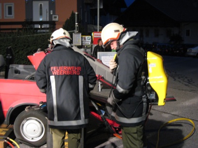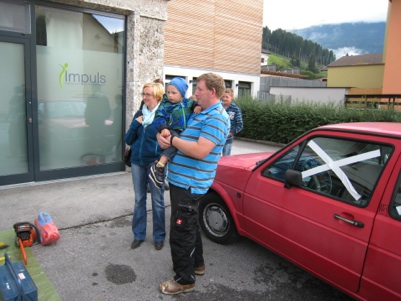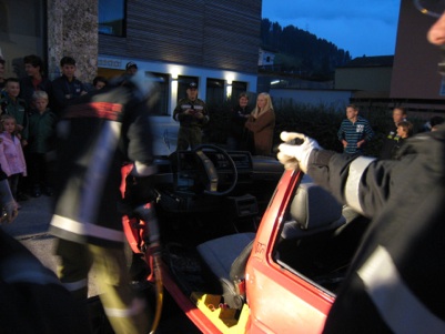 Helmut Egger erklärte wie ein Auto mit der Bergeschere aufgeschnitten wird.