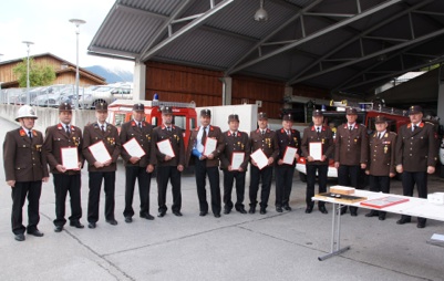 Abschnittskommandant Karl Rinnergschwentner und Vizebürgermeister Manfred Kohler übergaben die Medaillen, Urkunden und Aufschläge.