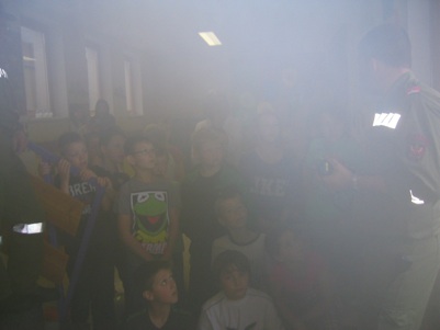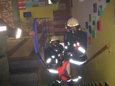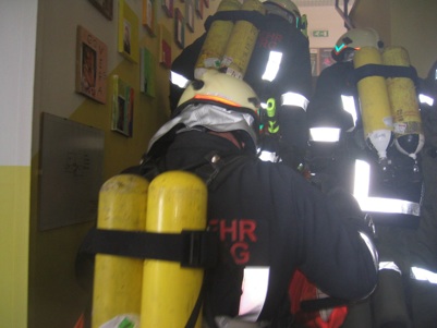 Nachdem die Kinder mit einer Jause der Feuerwehr Weerberg gestärkt waren, wurden einige über eine Leiter aus dem Klassenraum „geborgen“. Im Anschluss an diese spektakuläre Aktion durfte sich ein weiterer Teil der Kinder durch einen Atemschutztrupp aus dem „verrauchten“ Turnsaal bergen lassen.